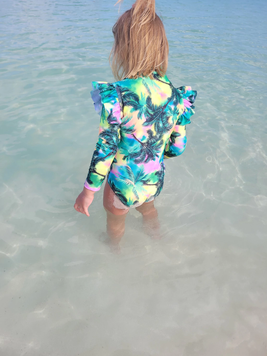 Traje de baño para niñas manga larga. Mallita ideal para proteger a tu bebé del sol. Protección, comodidad y estilo en una sola prenda. Este traje de baño entero de manga larga esta diseñado para acompañar a las más pequeñas en cada aventura bajo el sol. Su estampado en tonos vibrantes transmite alegria y frescura, mientras que su cierre frontal permite ponerlo y sacarlo fácilmente, brindando mayor comodidad tanto a las niñas como a los padres. Todas nuestras mallas estan forradas tanto adelante como atrás, aportan mayor calidad, durabilidad y resistencia.