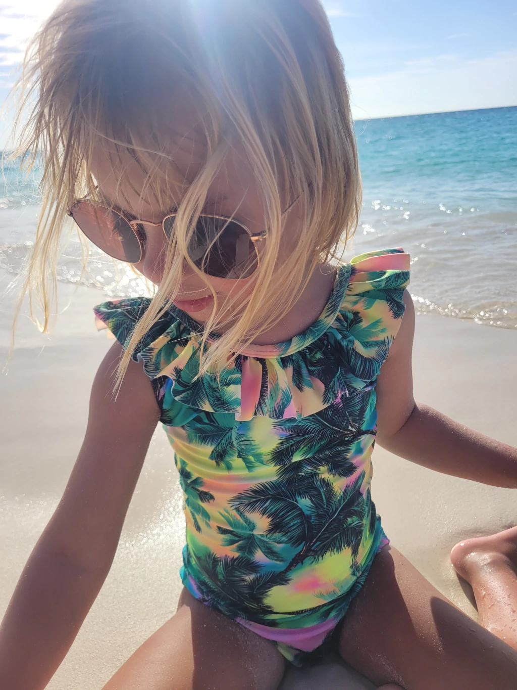 Traje de baño enterizo perfecto para que tu pequeña disfrute del verano con estilo y comodidad. Su diseño esta pensado para que las mas chiquitas se sientan libres y cómodas mientras juegan. Tiene un hermoso volado que hace de esta prenda irresistible, no solo es un detalle tierno, sino que tambíen le dan un movimiento encantador.
