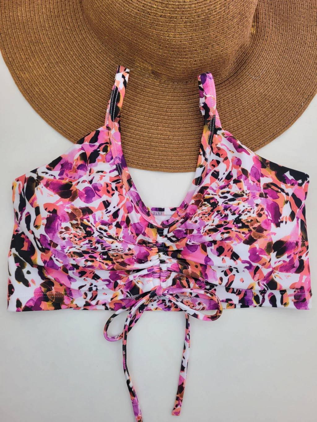 Top deportivo de lycra con breteles regulables. Tiene frunce regulable adelante que hace que puedas usarlo de dos maneras , fruncido tipo corpiño o sin fruncir tipo top crop. La espalda es entera y trae abertura para colocar relleno. Este corpiño tiene un calce increible y sostiene super bien para las que tienen mucho busto !