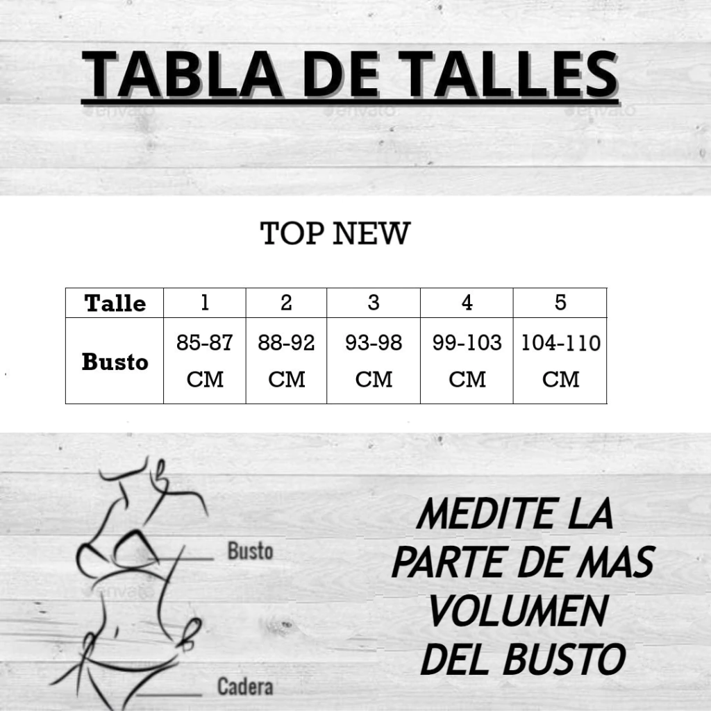 En la última foto encontras la tabla de talles, te tenes que medir la parte de mas volumen del busto. Otro dato importante es que si estas en el medio de dos talles te recomendamos elegir el mas grande.