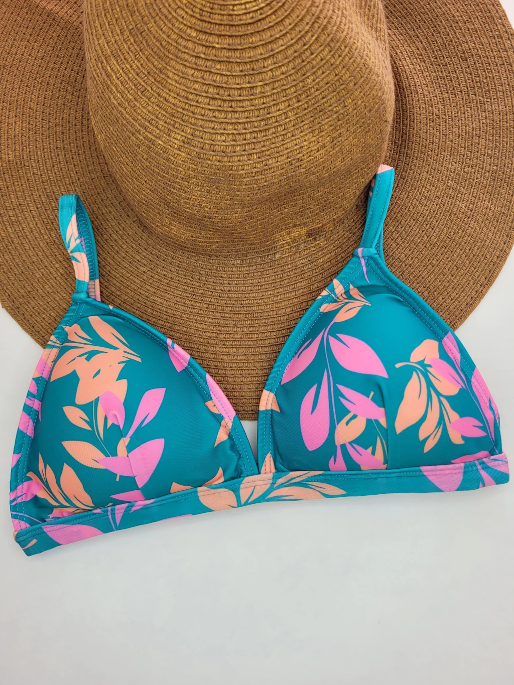Corpiño triangulo fijo de lycra, con broche en la espalda y breteles regulables.
