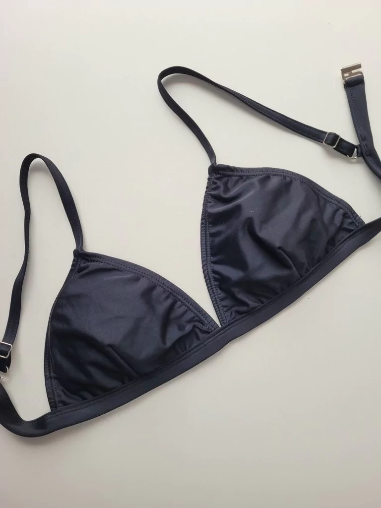 Corpiño triangulo fijo de lycra, con broche en la espalda y breteles regulables.